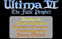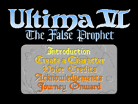 Copy protection is omitted, as is the option for a character transfer from earlier installments, despite Ultima IV and Ultima V having previously been released for the FM Towns. A "Voice Credits" option appears in its place on the main menu.