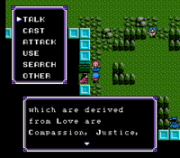 - In the Nintendo remake of Ultima IV (where most character names were omitted and dialogue was significantly modified), Diane can be identified as the woman in the same location. She lists Compassion, Justice, Sacrifice and Spirituality as the virtues derived from Love, cautioning the Stranger to use only the stones which correspond to those at the Altar of Love.[2]