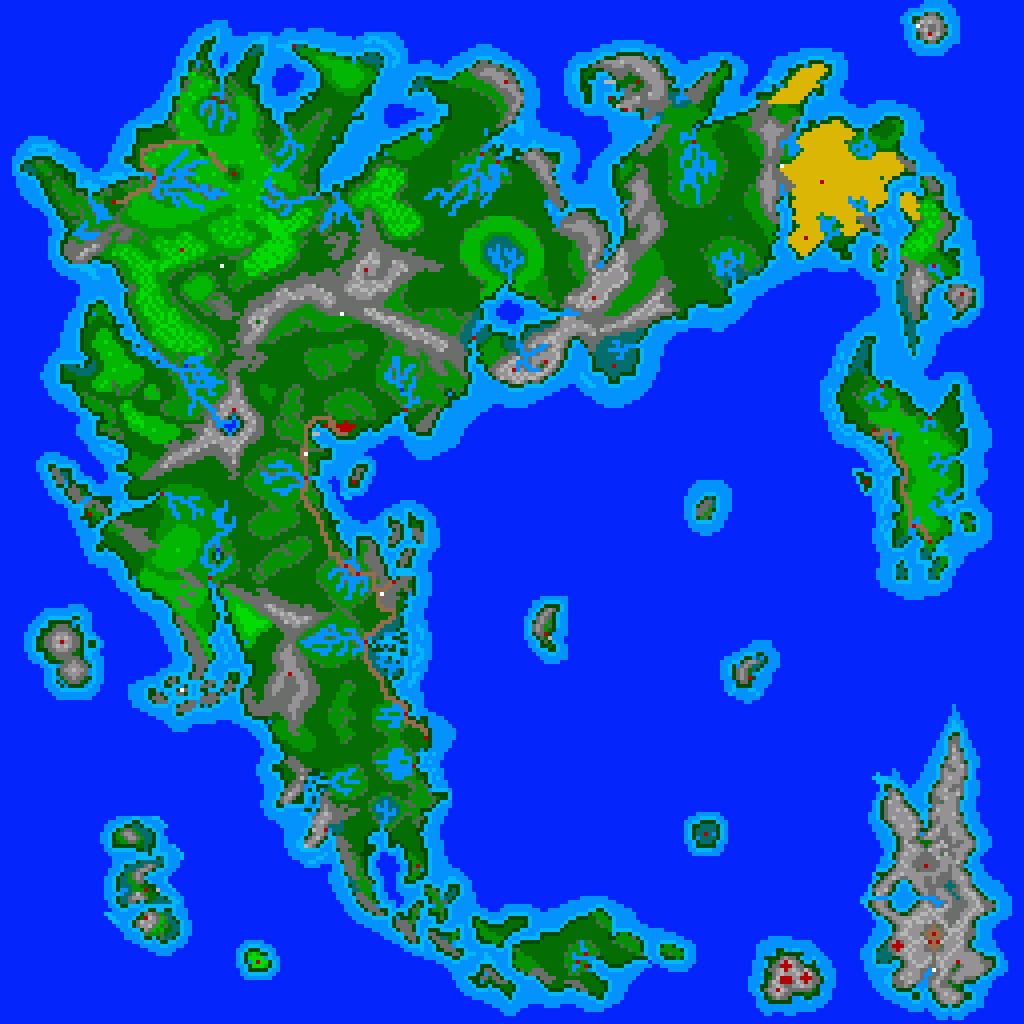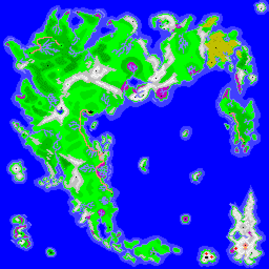 Map of Britannia, generated from the Ultima V game data file, colorized, then enlarged