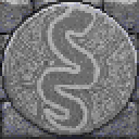 Ultima Underworld II wall/floor texture with a silver serpent ornament on it scaled 2x