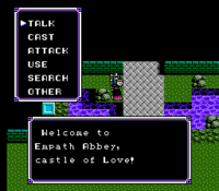 The two sentries would speak of their work guarding the gate to the abbey, revealing that within the keep's walls there lay a sacred Oak Grove where many wanderers found peaceful respite. They would ask if the Stranger was saturated with Love, and should an honest answer be given, they would direct the hero to the abbey's shrine.[1]