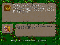 The Avatar received the magic lantern from Trellek, after earning the emp's favor with a gift of honey. By shining its light into the wilds of Deep Forest during the night, the hero could attract a wisp, and begin a conversation with it.[1]